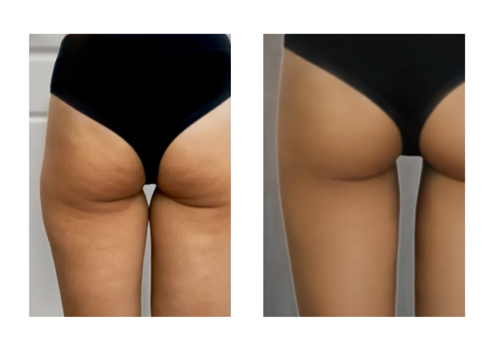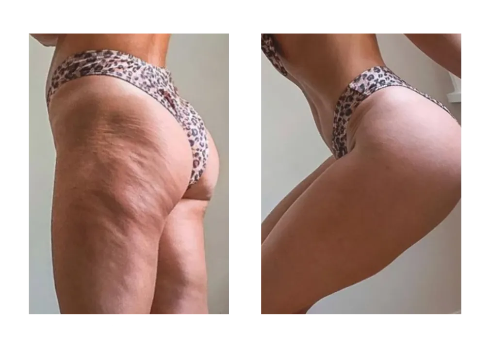 The skin's surface appears smoother and firmed with a noticeable reduction in cellulite after just one session.